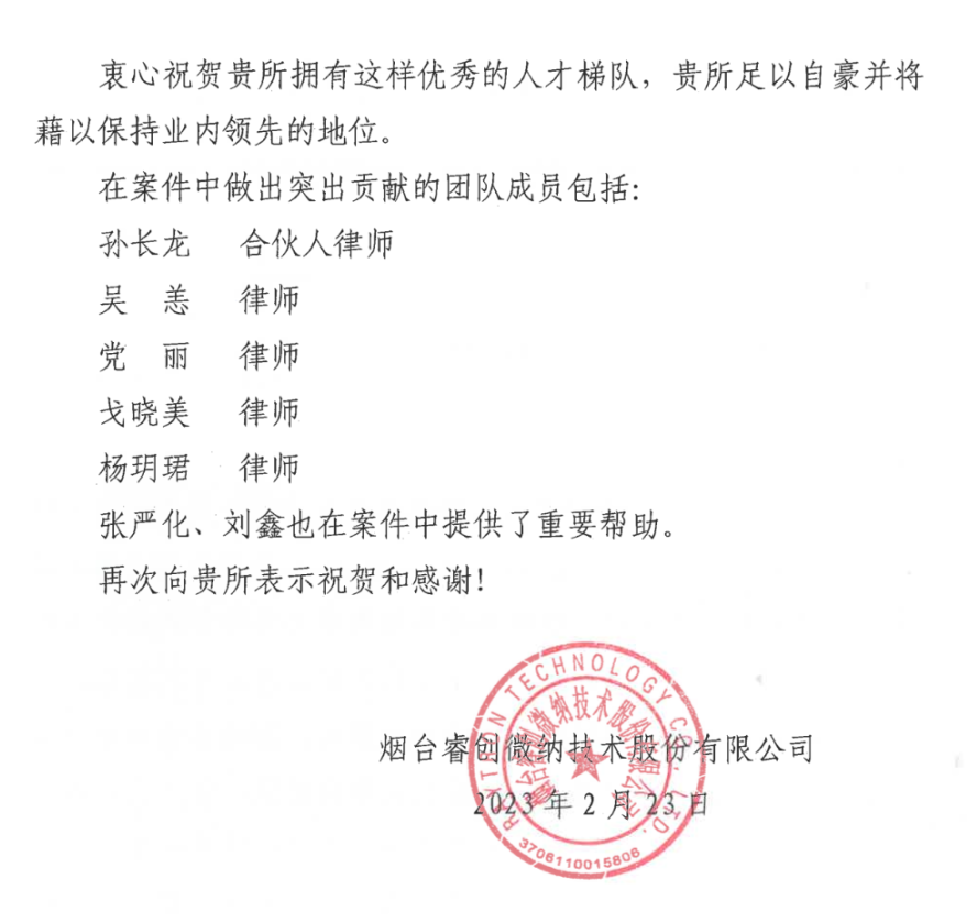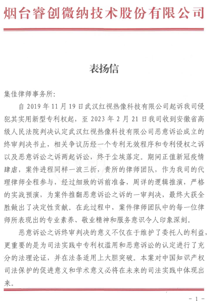 これにより、叡創集団は悪意ある訴訟事件で最終的な勝利を収め、自らの正當な権利と利益を守ることに成功し、叡創集団と武漢紅視との間で4年間続いた、新型コロナウイルス蔓延期間に及ぶ一連の訴訟紛爭を成功裏に終結させることができた。