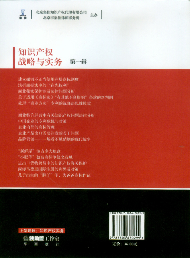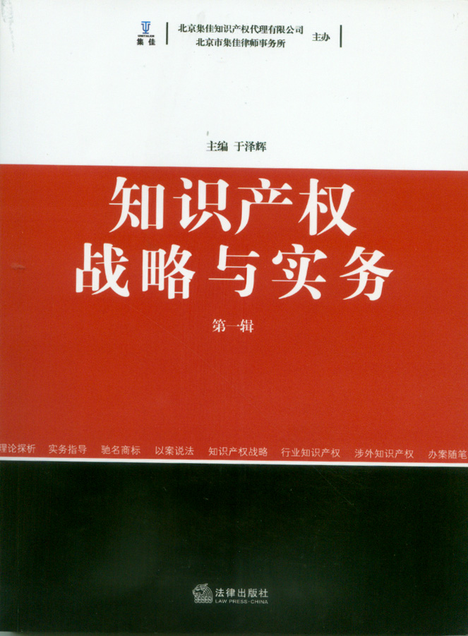 集佳一直倡導在為客戶提供優質知識產權服務的同時,注重加強在知識產權實務和理論方面的研究。在長達十余年為客戶提供卓越服務的過程中,集佳積累了非常豐富的實踐經驗,并在此基礎上總結形成了豐富的研究成果。近日,集佳將這些成果進行了系統整理,并結集成書——《知識產權戰略與實務》(第一輯)。該書由集佳合伙人會議主席于澤輝主編,已于近日由法律出版社面向全國正式出版發行。