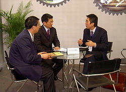 現場解決侵權糾紛                                  展會組委會負責人接受中央電視臺新聞記者采訪