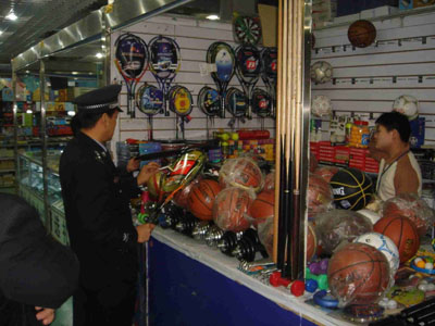 工商執(zhí)法人員進行檢查                                                                        現(xiàn)場查獲的侵權(quán)產(chǎn)品