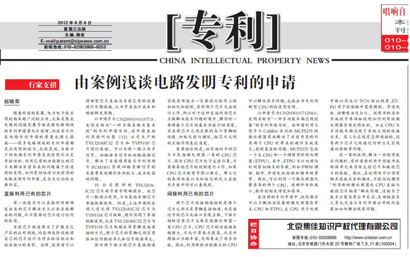 《中國(guó)知識(shí)產(chǎn)權(quán)報(bào)》:由案例淺談電路發(fā)明專(zhuān)利的申請(qǐng)