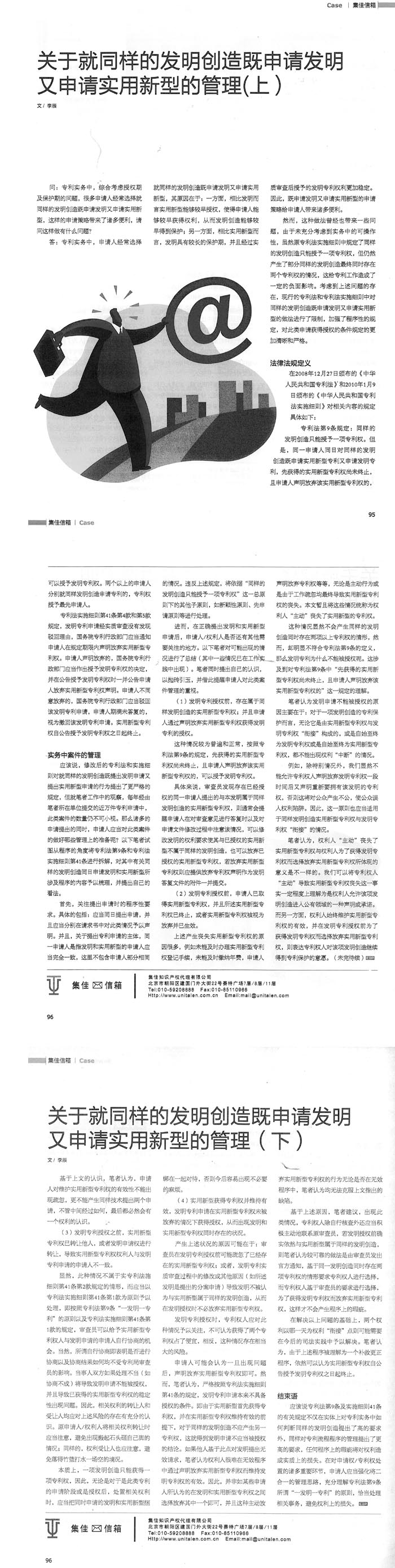 《電子知識產(chǎn)權(quán)》:關(guān)于就同樣的發(fā)明創(chuàng)造既申請發(fā)明又申請實用新型的管理