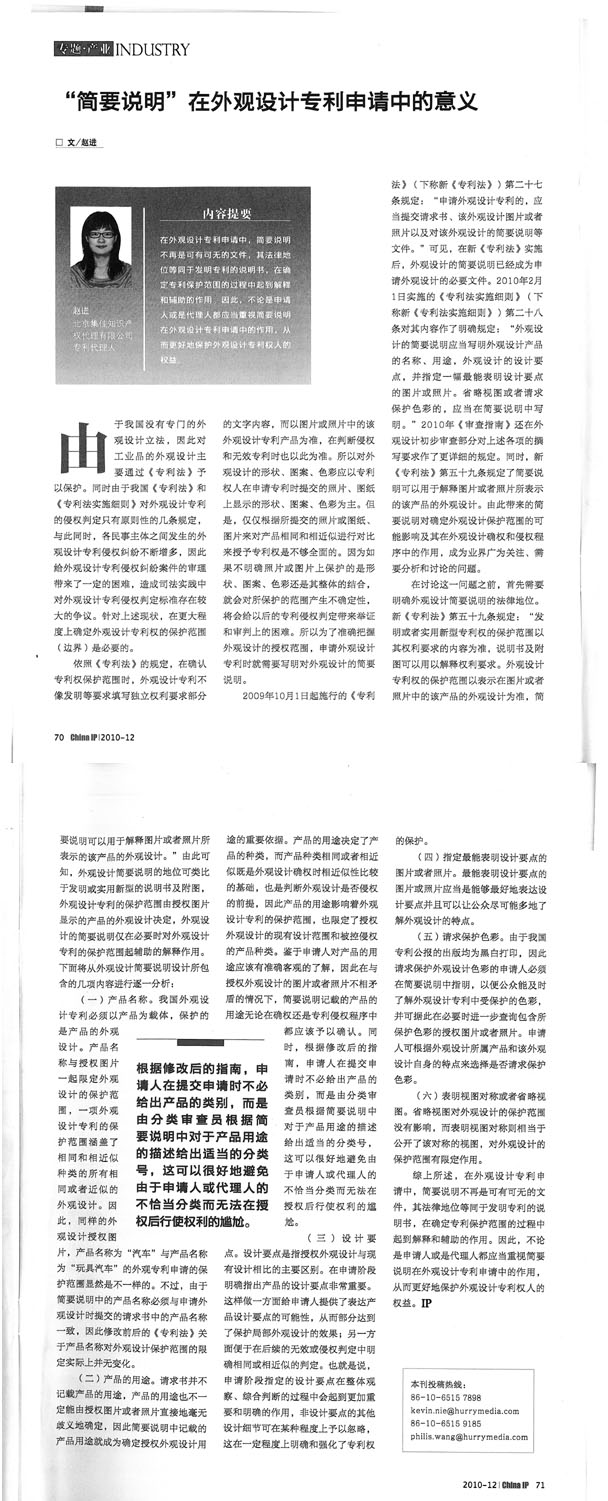 《China IP》:“簡要說明”在外觀設(shè)計(jì)專利申請(qǐng)中的意義