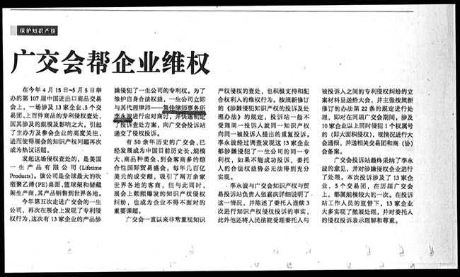 《國(guó)際商報(bào)》:廣交會(huì)幫企業(yè)維權(quán)