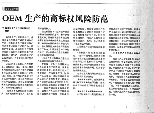 《國(guó)際商報(bào)》:OEM生產(chǎn)的商標(biāo)權(quán)風(fēng)險(xiǎn)防范