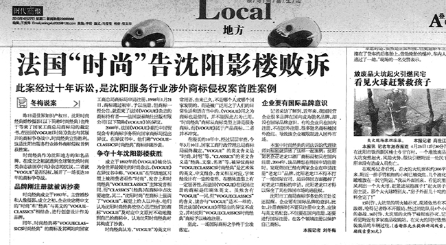 《時(shí)代商報(bào)》:法國(guó)“時(shí)尚”告沈陽(yáng)影樓敗訴