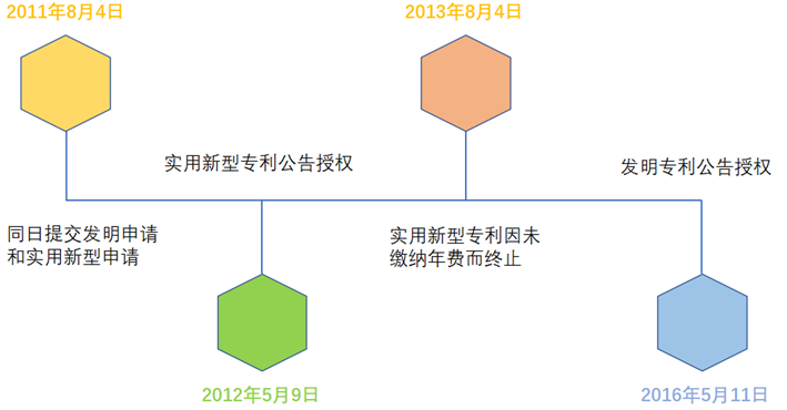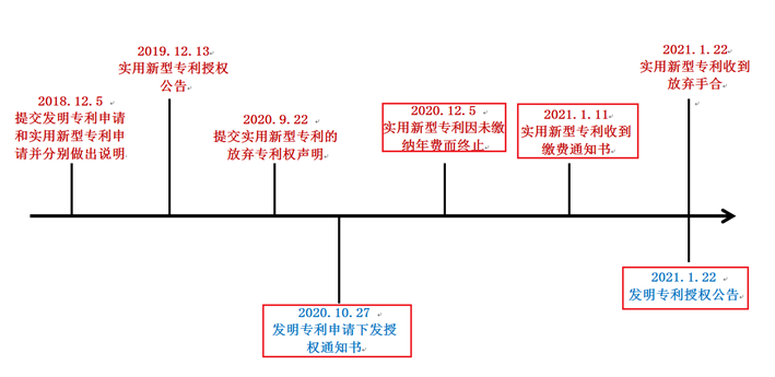 為了使得本案的時間脈絡一目了然,筆者根據涉案發明專利和與其同日提交的實用新型專利的重要時間節點繪制了以下時間軸: