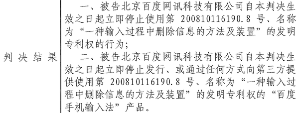 集佳代理搜狗公司處理的“一種輸入過程中刪除信息的方法及裝置”發(fā)明專利(ZL200810116190.8)無效一案,已于近日收到復(fù)審委做出的審查決定,維持專利權(quán)全部有效。該專利歷經(jīng)請求人提出的三次無效宣告請求,集佳均代理搜狗公司并獲得三次連續(xù)勝利!同時,日前北京知識產(chǎn)權(quán)法院已針對該涉案專利做出一審判決,判決百度公司立即停止侵權(quán)行為,即立即停止發(fā)行、或通過任何方式向第三方提供使用涉案專利權(quán)的“百度手機(jī)輸入法產(chǎn)品”!