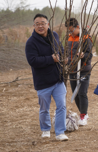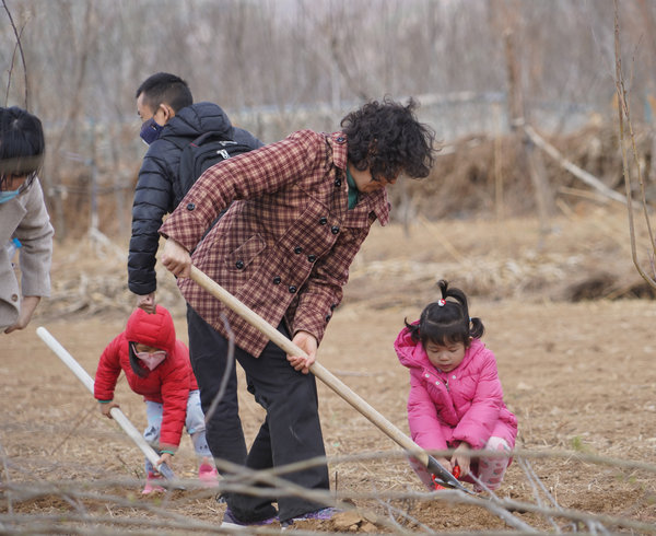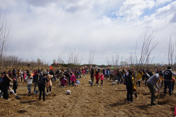 到達植樹基地,大家熱情高漲,立刻投入到植樹勞動中。有人挖坑,有人扶苗,有人培土,有人澆水,各個環節有條不紊,不管是白發蒼蒼的爺爺奶奶,還是稚氣十足的小朋友,每個人都忙的不亦樂乎,處處是一派熱火朝天的景象。盡管褲腳上沾滿了沙土,額頭上冒出了汗珠,但大家絲毫不在意,依然干勁十足,一時間,在歡聲笑語中,植樹基地呈現出初春的生機與歡樂。