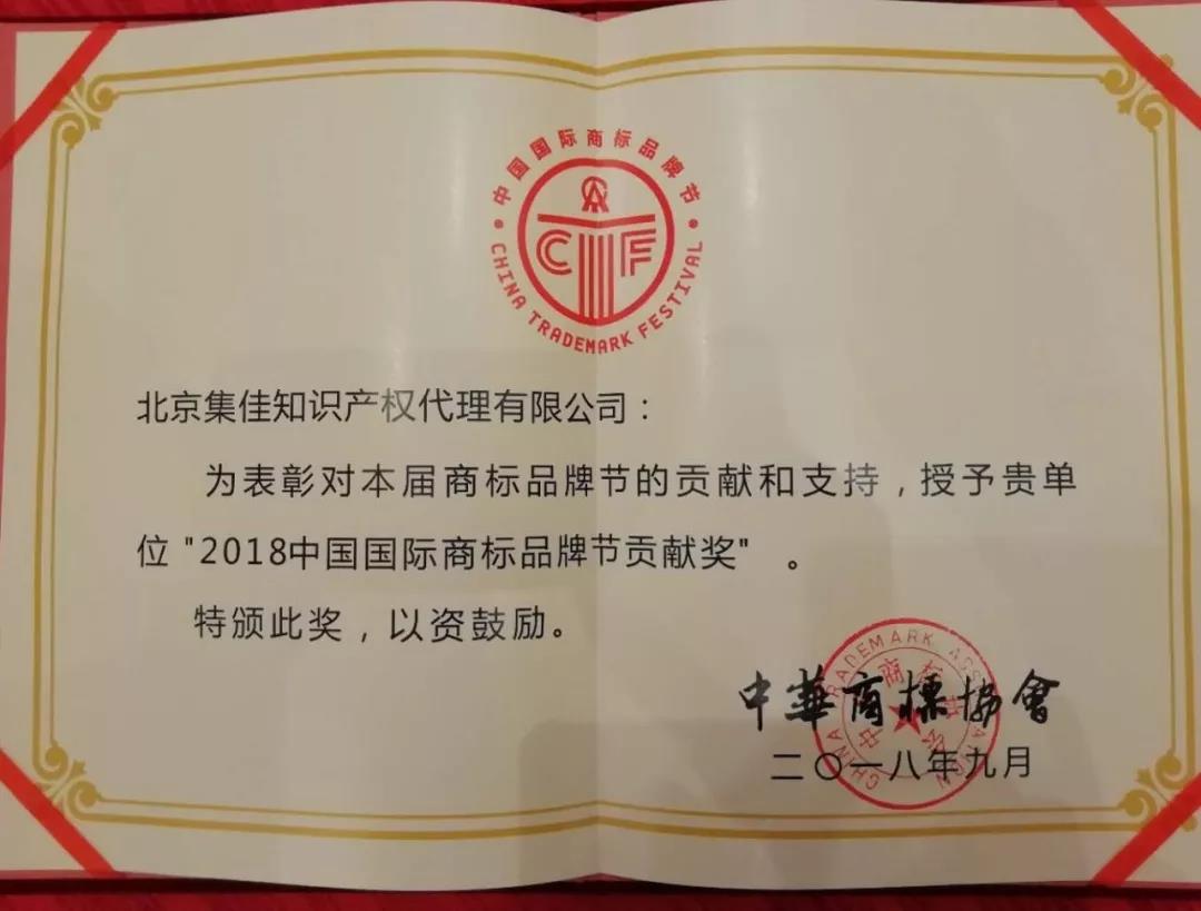 集佳喜獲“2018中國國際商標品牌節貢獻獎”