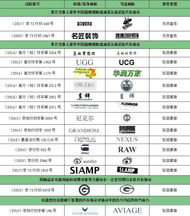 ”圖形商標(biāo)復(fù)審案件中均是因涉及公共利益保護(hù)的問題而未采信共存協(xié)議。