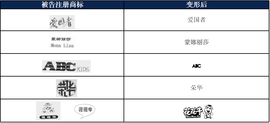 2、“變形使用”的判斷標(biāo)準(zhǔn),寬嚴(yán)對(duì)比:(1)若有惡意注冊(cè)或商譽(yù)攀附的情況,趨嚴(yán):在“世紀(jì)寶馬服飾”案中,被訴標(biāo)識(shí)“ ”與其注冊(cè)商標(biāo)“ ”相比,僅有顏色對(duì)比、對(duì)角方向的差異,但仍被認(rèn)定侵害寶馬馳名商標(biāo);“好太太”廚電案、“藍(lán)月亮”紙巾案中,被告使用中的商譽(yù)攀附情節(jié)明顯,法院認(rèn)定在被告拼音商標(biāo)基礎(chǔ)上增加中文部分的被訴標(biāo)識(shí)“ ”,以及改變字體及圖形部分的“ ”被認(rèn)定構(gòu)成“變形使用”、侵權(quán)成立。(2)若由于商業(yè)使用環(huán)境等客觀需要,導(dǎo)致被訴標(biāo)識(shí)與注冊(cè)樣式稍有差別,一般不輕易判為“變形使用”,如“蒙娜麗莎”“愛國(guó)者”“ABC”等案件。法院認(rèn)為,被訴標(biāo)識(shí)雖與注冊(cè)商標(biāo)有所差異,但未改變顯著特征,仍屬于對(duì)注冊(cè)商標(biāo)的合理使用。