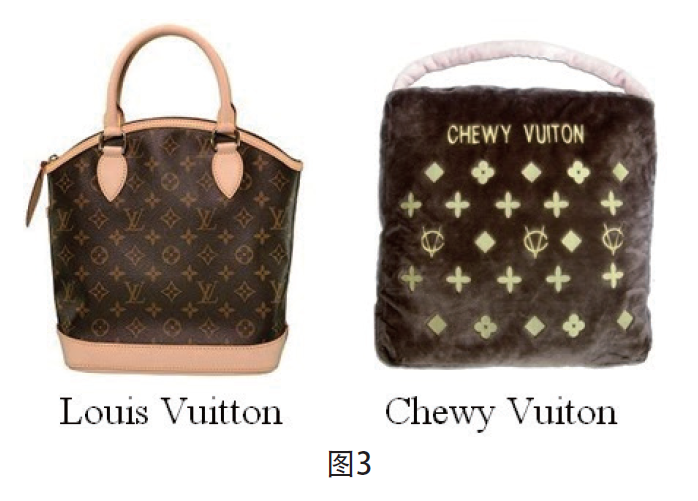 本案原告仍然是路易威登,其于2020年將寵物用品公司Haute Diggity Dog, LLC告上法庭。被告是一家經(jīng)營(yíng)寵物用品的公司,出售Chewy Vuiton寵物玩具(見圖3)。