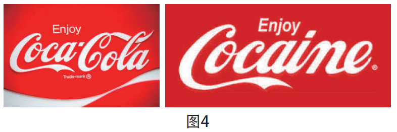 被告Gemini Rising, Inc.是一家海報(bào)設(shè)計(jì)和銷售公司,其將可口可樂公司的商標(biāo)“Enjoy Coca-Cola”(享用可口可樂)改為“Enjoy Cocaine”(享用可卡因)并印制在海報(bào)上,其字體和設(shè)計(jì)風(fēng)格與可口可樂公司的商標(biāo)類似(見圖4)。