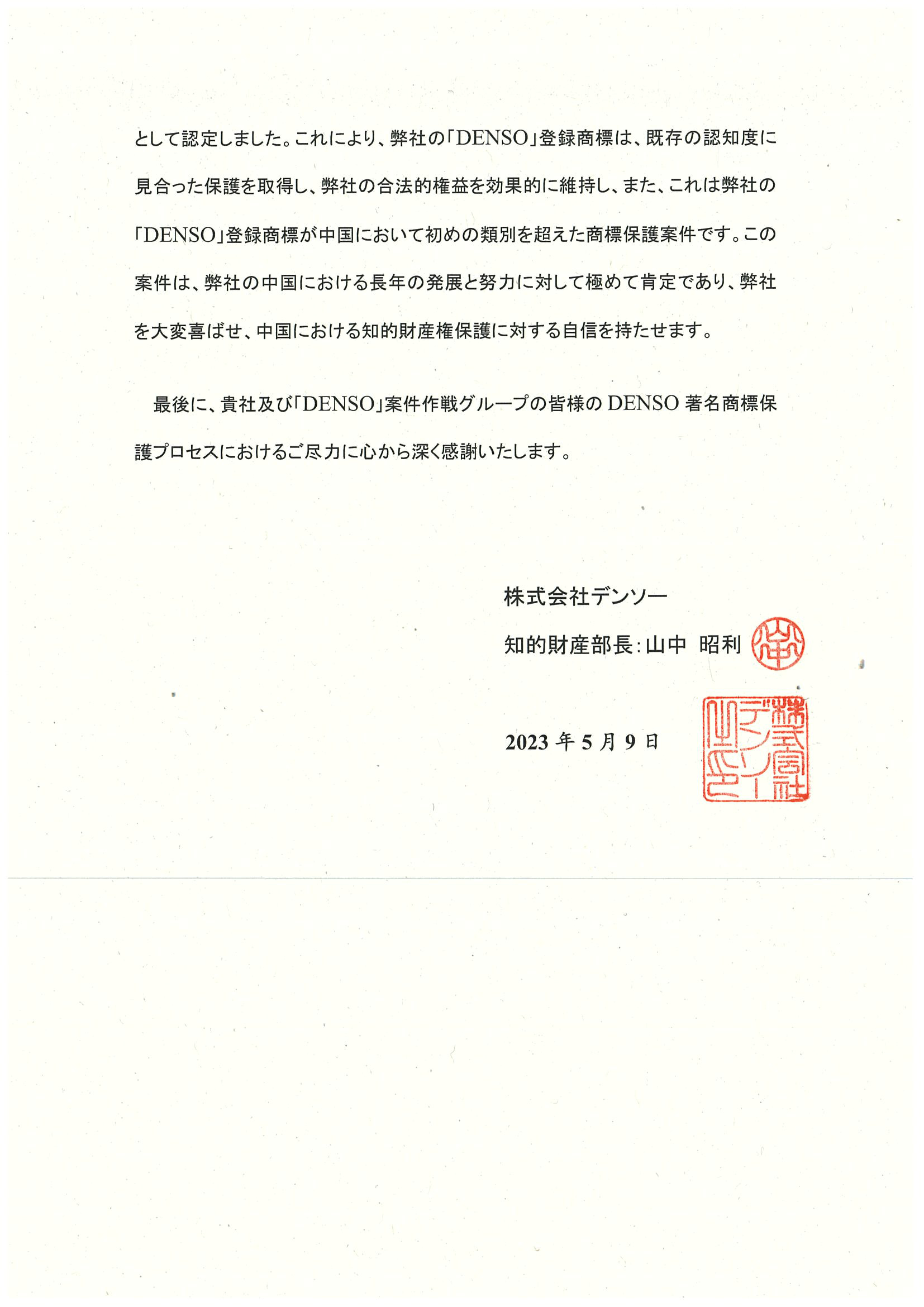 上述案件是“DENSO”注冊商標在中國首個實現跨類別保護的案件,通過該案,集佳成功代理客戶使其“DENSO”注冊商標獲得了與已有知名程度相適應的保護力度,有效地維護了客戶的合法權益。