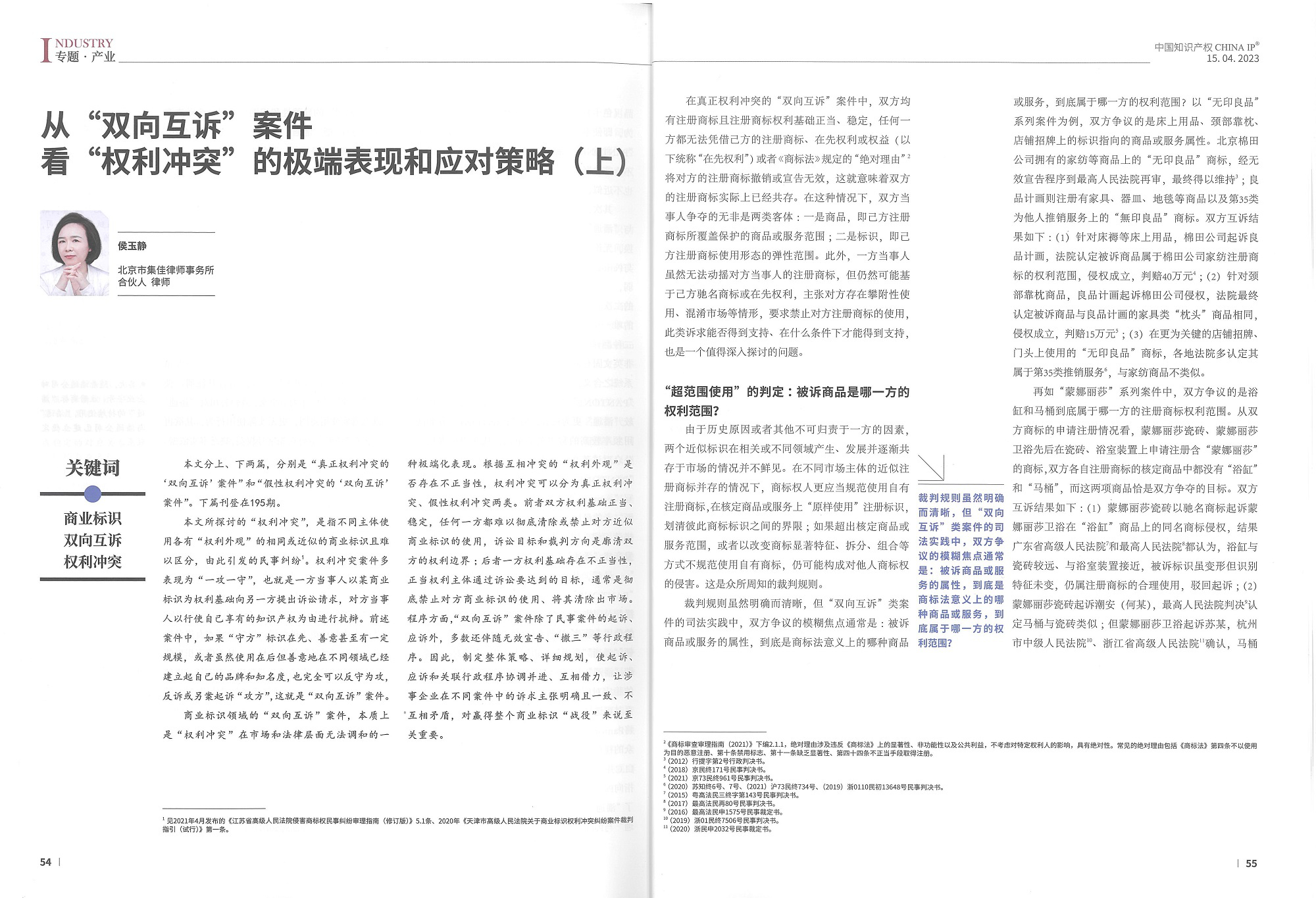 集佳文章《從“雙向互訴”案件看“權利沖突”的極端表現和應對策略(上)》在《中國知識產權》發表