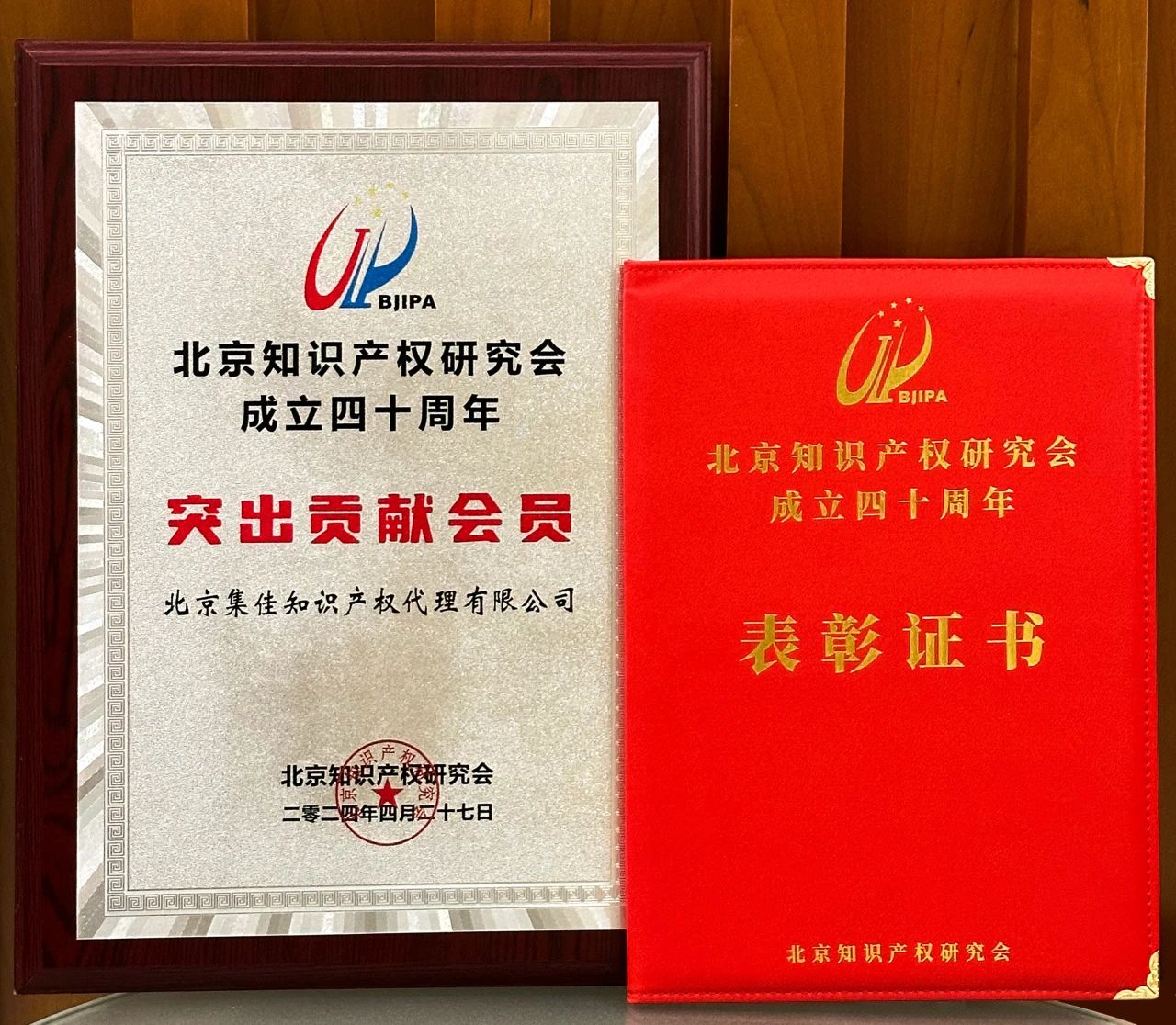 2024年4月27日,北京知識產權研究會成立四十周年慶典暨數字經濟與知識產權論壇隆重召開。在慶典儀式上,北京知識產權研究會會長、北京航空航天大學教授孫國瑞向在研究會工作中做出突出貢獻的個人和機構頒發了榮譽牌匾,北京集佳知識產權代理有限公司獲評“突出貢獻會員”榮譽稱號。