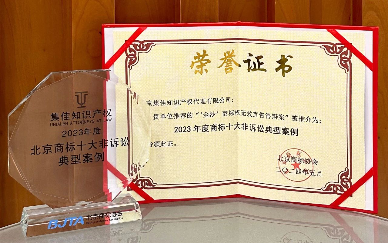 5月11日,北京商標協會發布“2023年度北京商標十大訴訟典型案例和商標十大非訴典型案例”,集佳代理的2個案例入選,分別是: