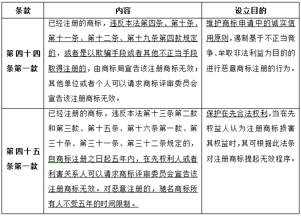第四十四條第一款規定了兩個法律規則,“或者”之前的規定,明示了注冊商標因違反商標法相關條款而將會被予以無效宣告的情形;“或者”之后的“以欺騙手段取得注冊或其他不正當手段取得注冊”則是兜底性實體規則。