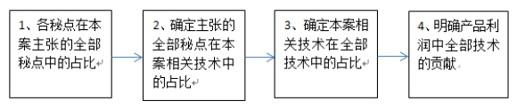 在實踐中,也可將第1步驟和第2步驟整合,直接確定本案主張并成立的秘點占本案相關技術的占比。也可以采用其他方法來計算技術貢獻率,例如,將采用權利人本案相關技術制備的產品與同類產品的營業利潤或銷售利潤進行比較,將差額作為權利人本案相關技術對產品利潤的貢獻,即直接得出上述第3步驟和第4步驟的貢獻率。權利人本案相關技術可能包括專利技術、技術秘密等,因此,需要再精確計算主張并成立的秘點占本案相關技術的占比。