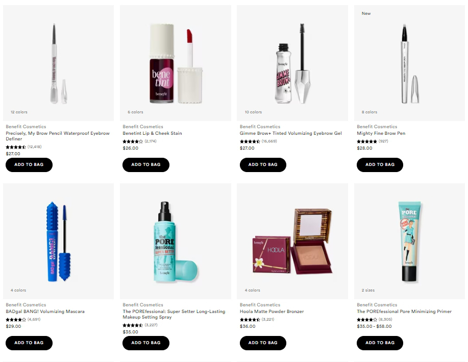 (貝玲妃在Ulta平臺上的暢銷產品及其定價。截自Ulta平臺)